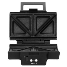 The electric appliance presses two superimposed slices of toast together and seals them at the edges. This traps the topping between the slices. Heating plates heat up, toasting the bread in minutes and also heating the contents. The sandwiches are usually separated diagonally to form a triangular shape. Since the bread is sealed all around, the ingredients do not fall out – provided you have not overdone it with the amount of toppings. The sandwich maker is usually closed with a click mechanism and signals to the user via an indicator light when the meal is ready.